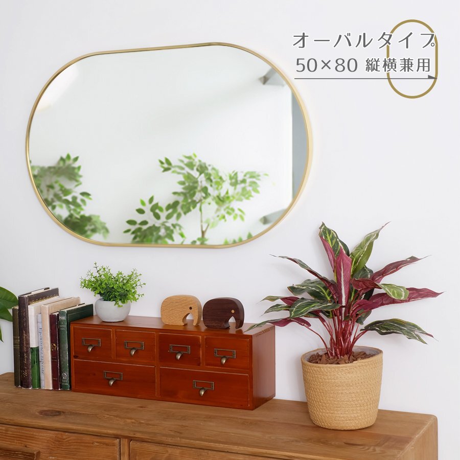 - Lon ロン ウォールミラー オーバルタイプ 50×80cm 縦横兼用 ゴールド 鏡 壁掛け 飛散防止 インテリア 洗面所 玄関 リビング ランドリー 円