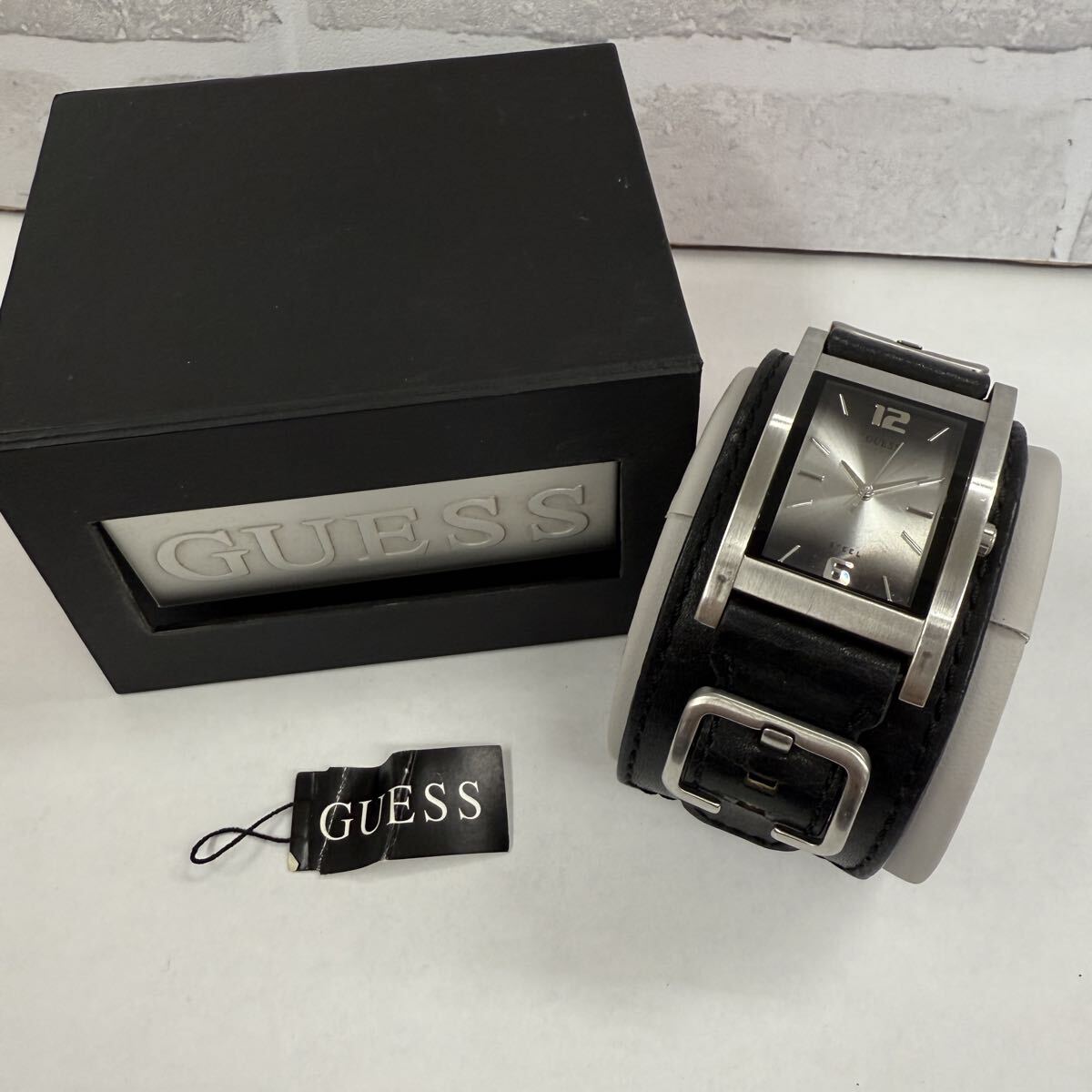 - ▽1円〜 GUESS ゲス 腕時計 クォーツ スクエア レザーベルト 現状不動品 KB2522