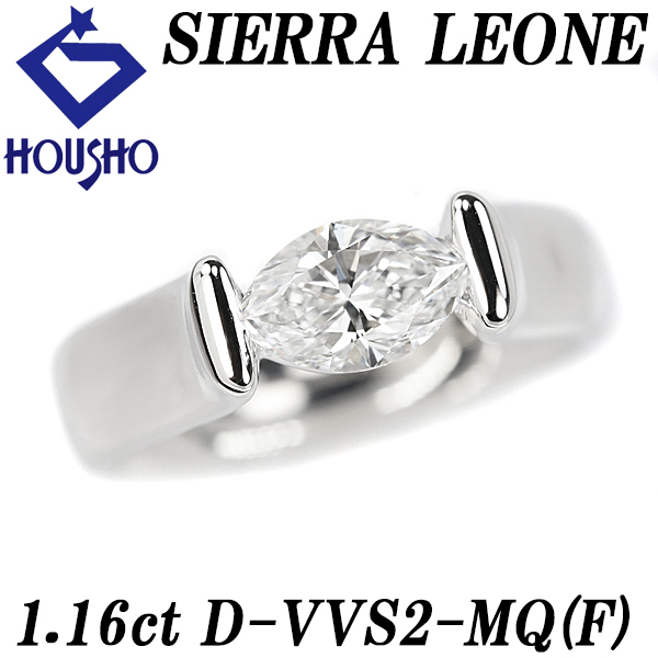 > セラリオン SIERRA LEONE ダイヤモンド リング Pt900 一粒石 マーキスカット ファンシー 鑑定書 グレード付き 送料無料 中古 宝正 903023