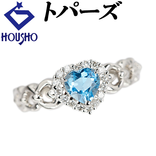 - トパーズ リング ダイヤモンド Pt900 ハート 透かし 送料無料 中古 宝正 903026