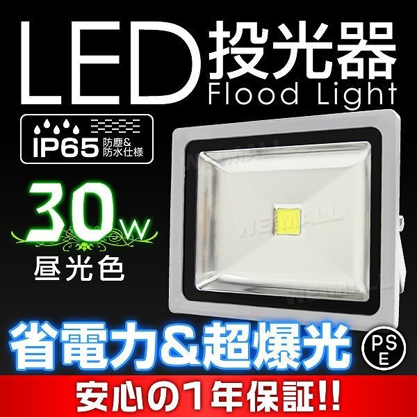 - PSE取得 一年保証!! LED 投光器 30W 300W相当 防水 コンセント付き 昼光色 広角 看板 屋外 ライト照明 作業灯