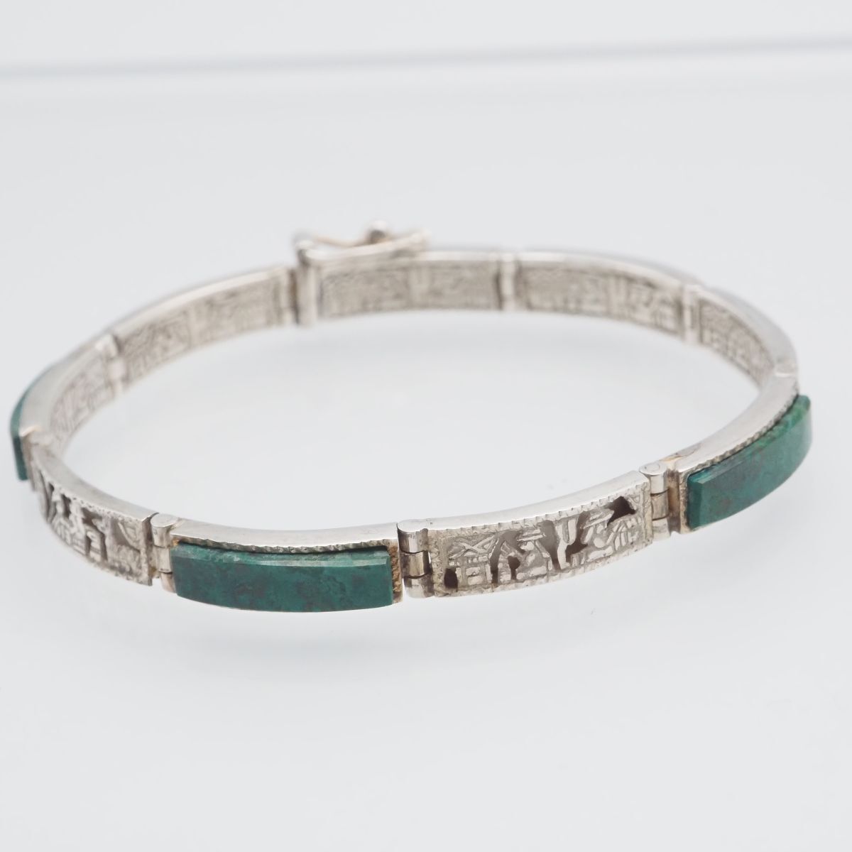 - H426 グリーンストーン 925刻印 ブレスレット 壁画 デザイン シルバー ヴィンテージ
