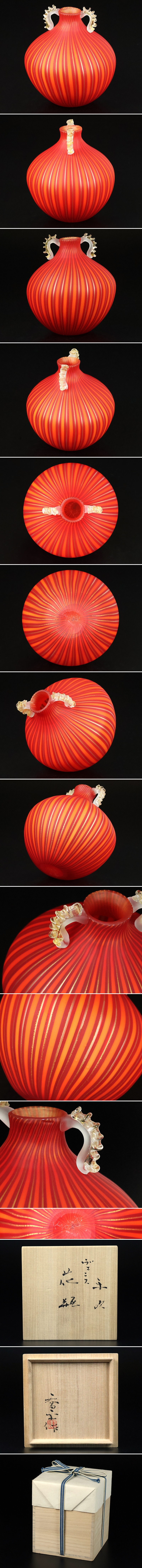 - 【 藤田喬平 】最上位作 手吹ヴェニス花瓶 共箱 保証 17318