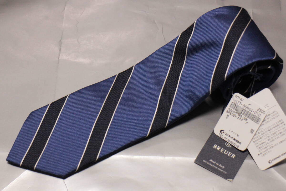> ブリューワー*エディフィス新品ネクタイ超美麗艶ブルー*シルバー*ネイビーレジメンタル重厚ツイル織切返し囲みストライプハンドメイド