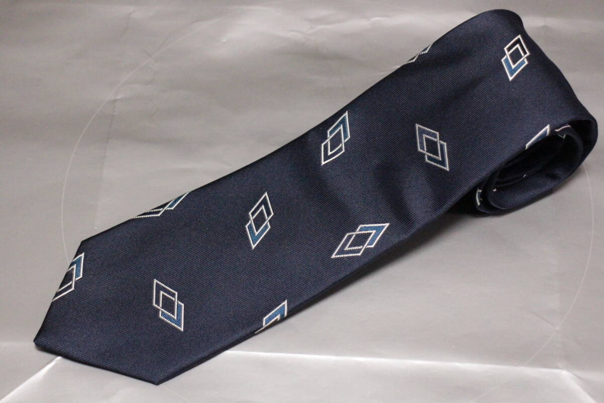 - ロバートフレイザー*阪急新品ネクタイ超美麗艶ネイビー*シルバー*ブルー菱小紋ジャガード織ツインスクウェア柄ハンドメイド