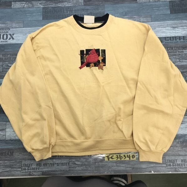 - top stitch BY MORNING SUN レディース 裏起毛 鳥刺繍 レイヤードトレーナー 黄色