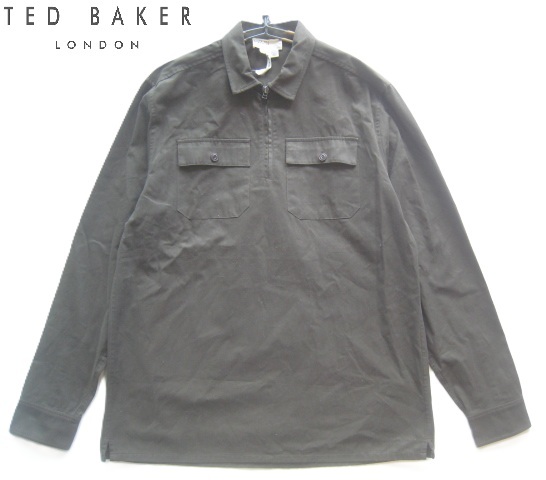> 極上イングランド製!!テッドベイカー TED BAKER*ハーフジップミリタリープルオーバーシャツ 4 実寸L カーキ 英国製