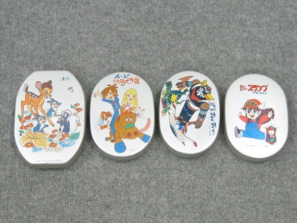 - 【心庵】昭和レトロ アルミ弁当箱/アラレちゃん・グレンダイザー・ポールのミラクル大作戦・バンビ 4点 B420