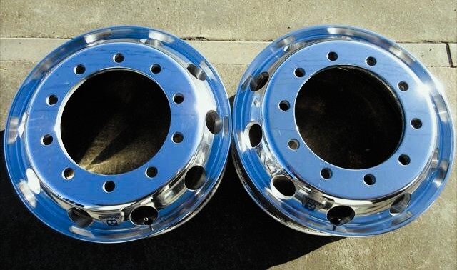 > 送料無料 美品 アルコア アルミホイール ISO 平面座 22.5×7.50 162 10穴 フロント用 鏡面仕上げ済み 2本セット その9
