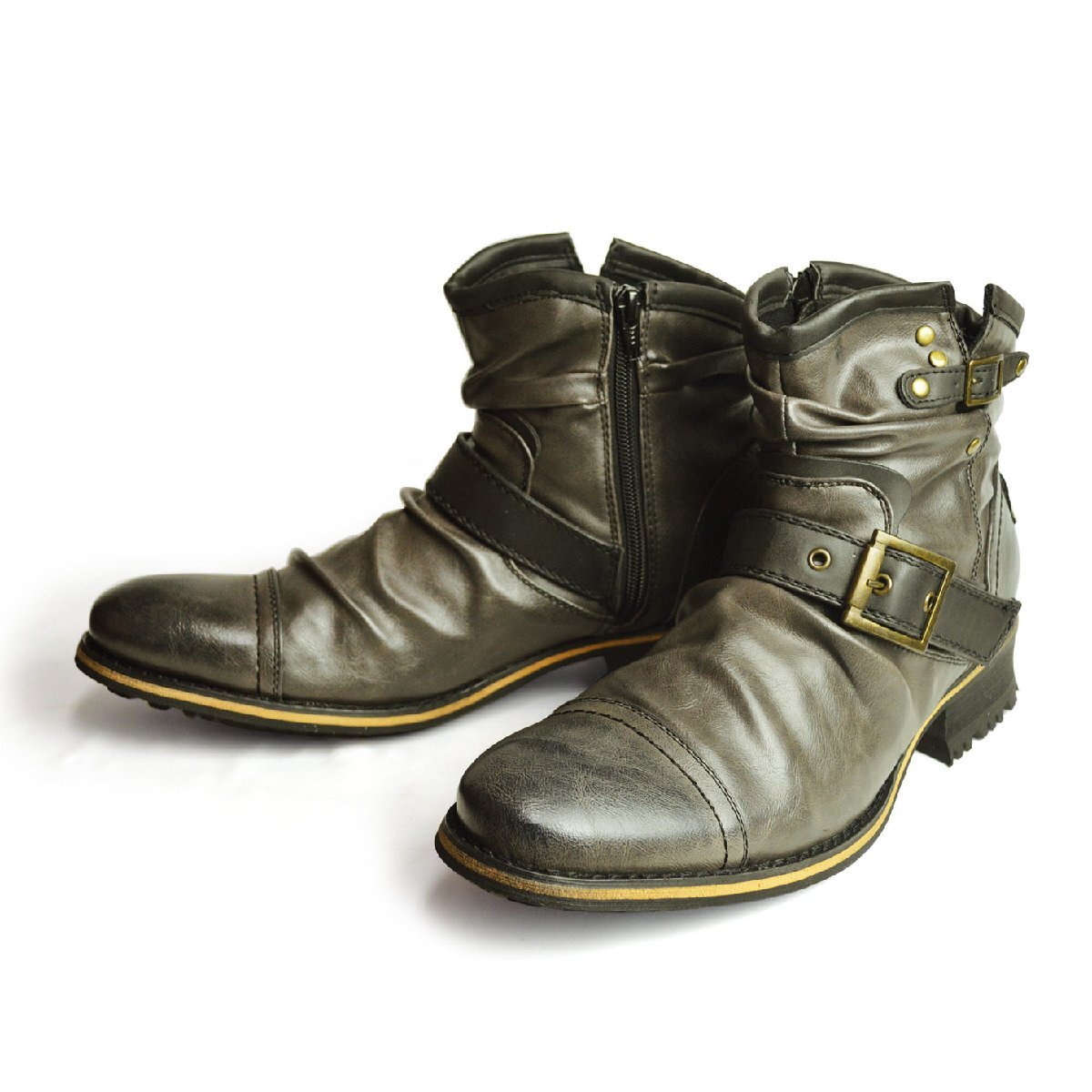 > 【新品】25.5cm■エンジニアブーツ ドレープブーツ ベルト バックル ショートブーツ ヴィンテージ スエード 大人 男 靴 メンズシューズ