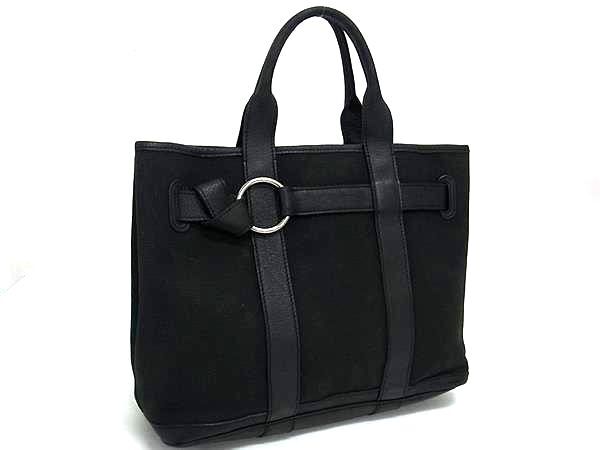 - 1円 HERMES エルメス ティットサンチュールPM トワルアッシュ×レザー SV金具 ハンドバッグ トート □K刻印 レディース ブラック系 FV3764