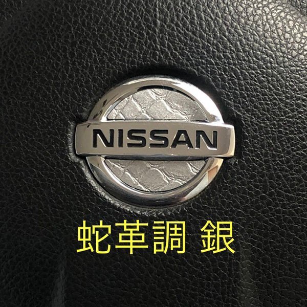 - 日産 ステアリング エンブレムシート 蛇革調 ヘビ革調 銀 SDH-N01 ハンドル ZEROWIN NISSAN 簡単取付け ドレスアップ 送料無料