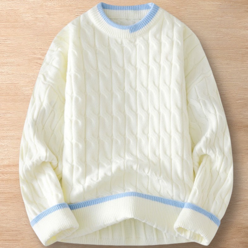 - Y089-2XL ベージュ 新品DCKMANY ウール混 ケーブル編み ニットセーター 配色 トップス 厚手 暖かい メンズ プルオーバー ラウンドネック