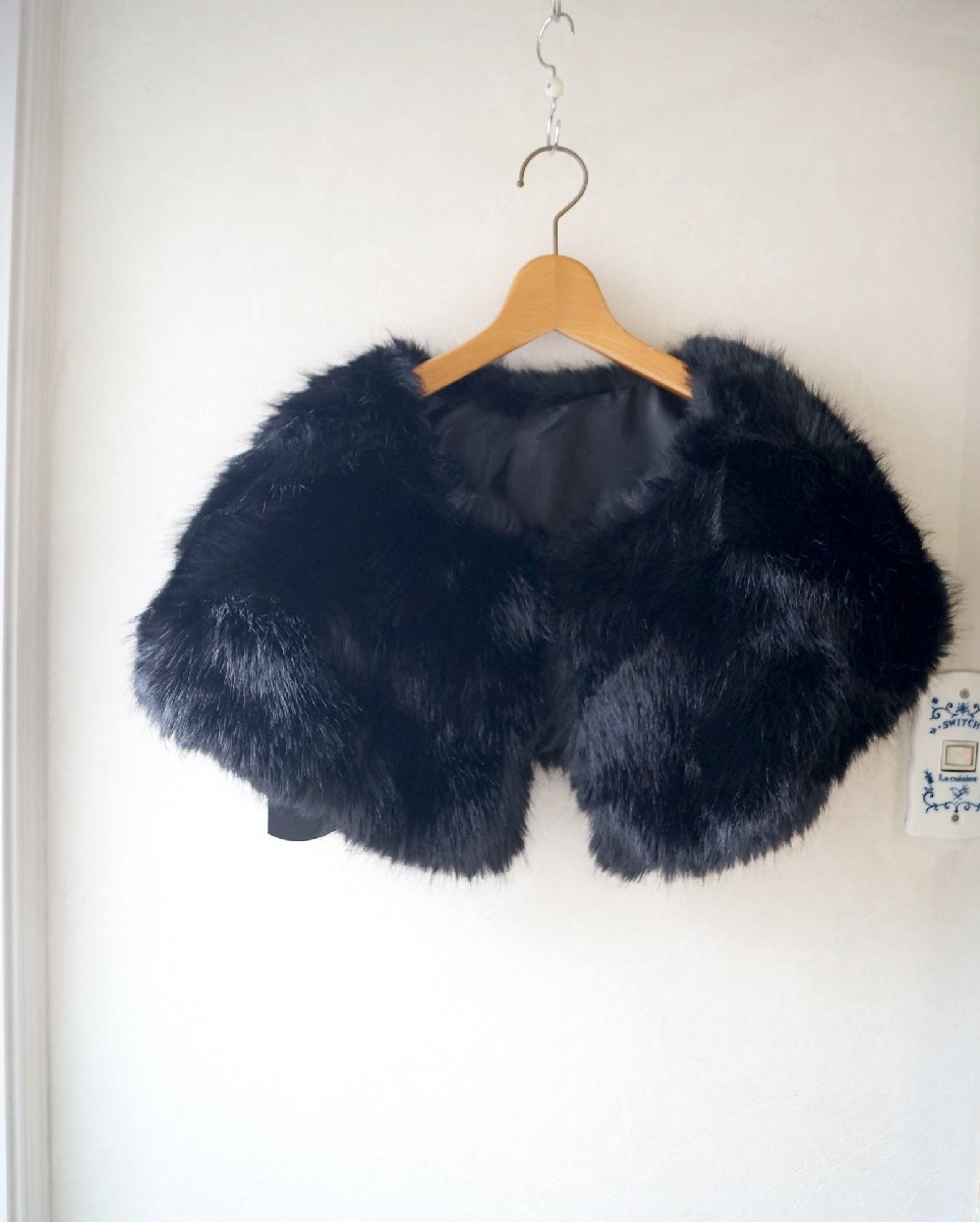 > ★未使用 DRESS+ / ドレスプラス *パール&ビジュー ブローチ付きフェイクファーケープボレロ 黒 *古着のgplus広島 2511t1