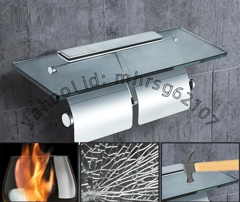 - 新品トイレット ペーパー ホルダー ガラス 棚付 インテリア 洋風 北欧 トイレ 壁掛け おしゃれ 収納 (ダブルタイプ)