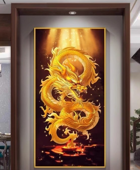 - 新品!金竜が飛ぶビングルーム装飾画 玄関装飾画 現代 ソファの背景装飾画 40*80cm