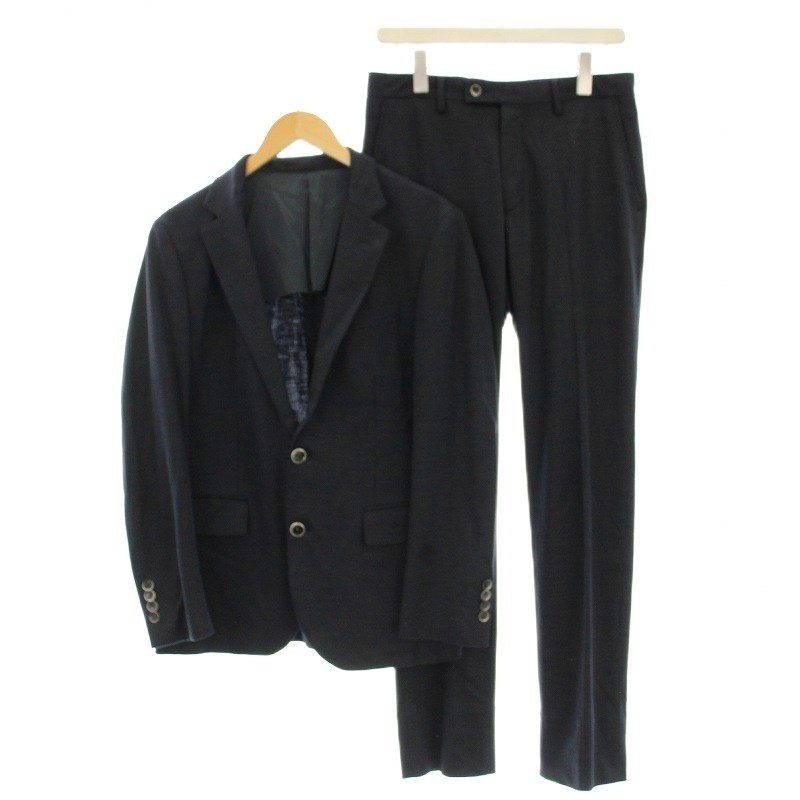 > エポカ ウォモ EPOCA UOMO リネン混 シングルスーツ セットアップ 背抜き ジャケット パンツ 44 ネイビー