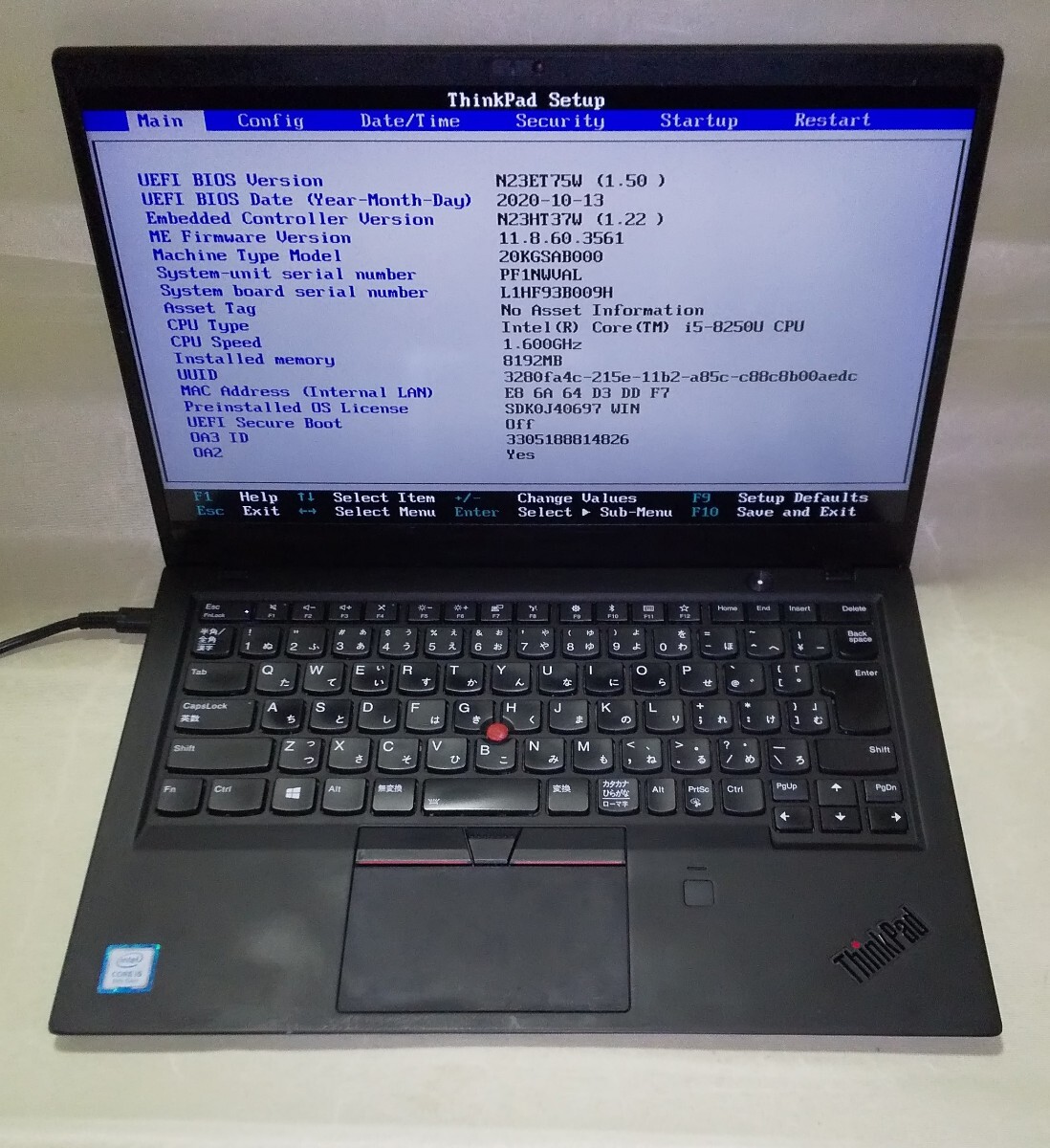 - 【Bios OK】 Lenovo ThinkPad X1 Carbon 20KG i5-8250U/8GB 第8世代 ①