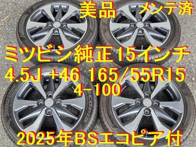 > 三菱純正 ミツビシ純正 165/55R15インチ 4.5J 4-100 +46 美品 2025年 BSエコピア付 eKワゴン eKアクティブ eKスペース デイズルークス 等