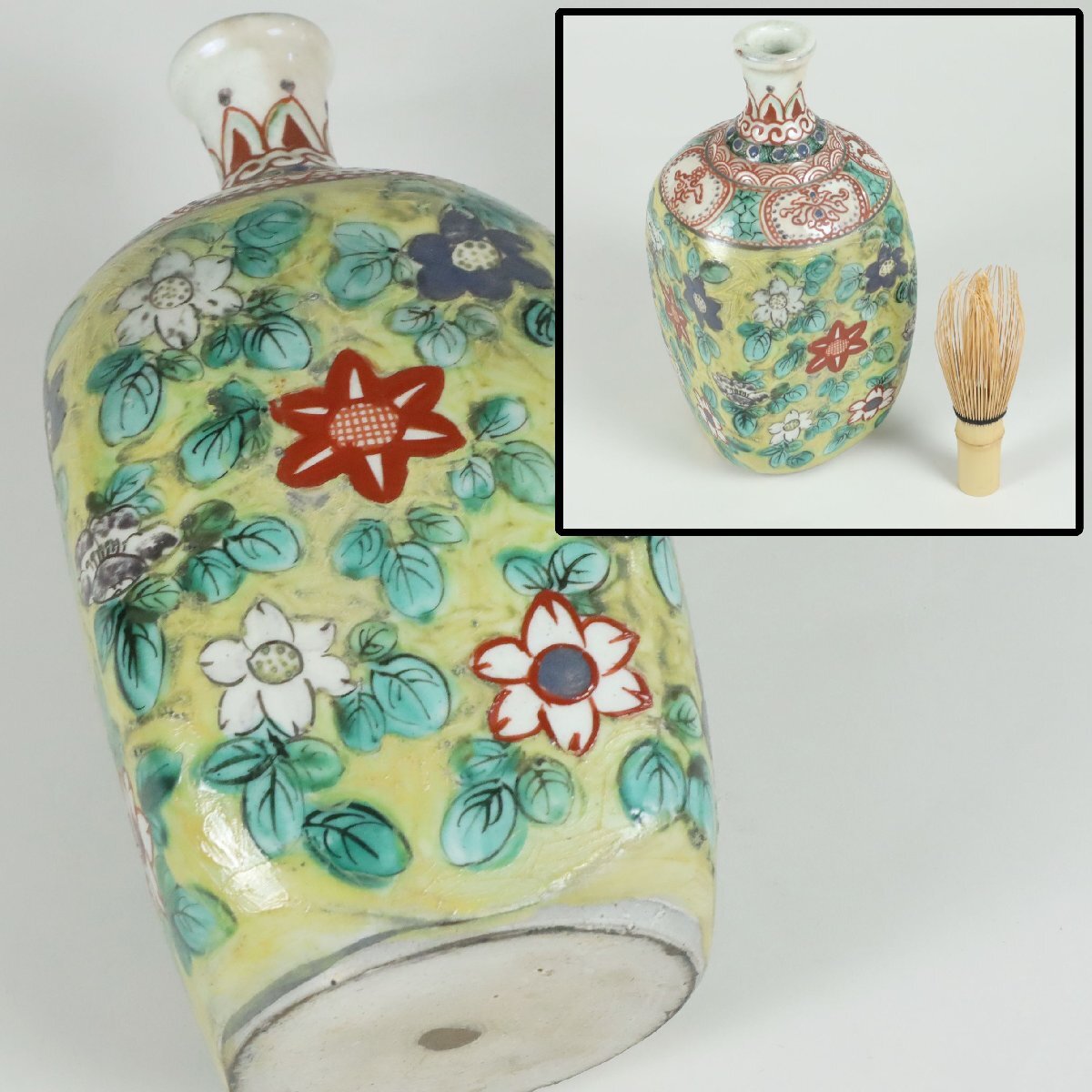- 図録掲載品 江戸後期 岩谷焼 華尽くし 保命酒徳利 鞆徳利 備後 鞆の浦 図録付 酒器 陶磁器 骨董品 美術品 2175wcczH