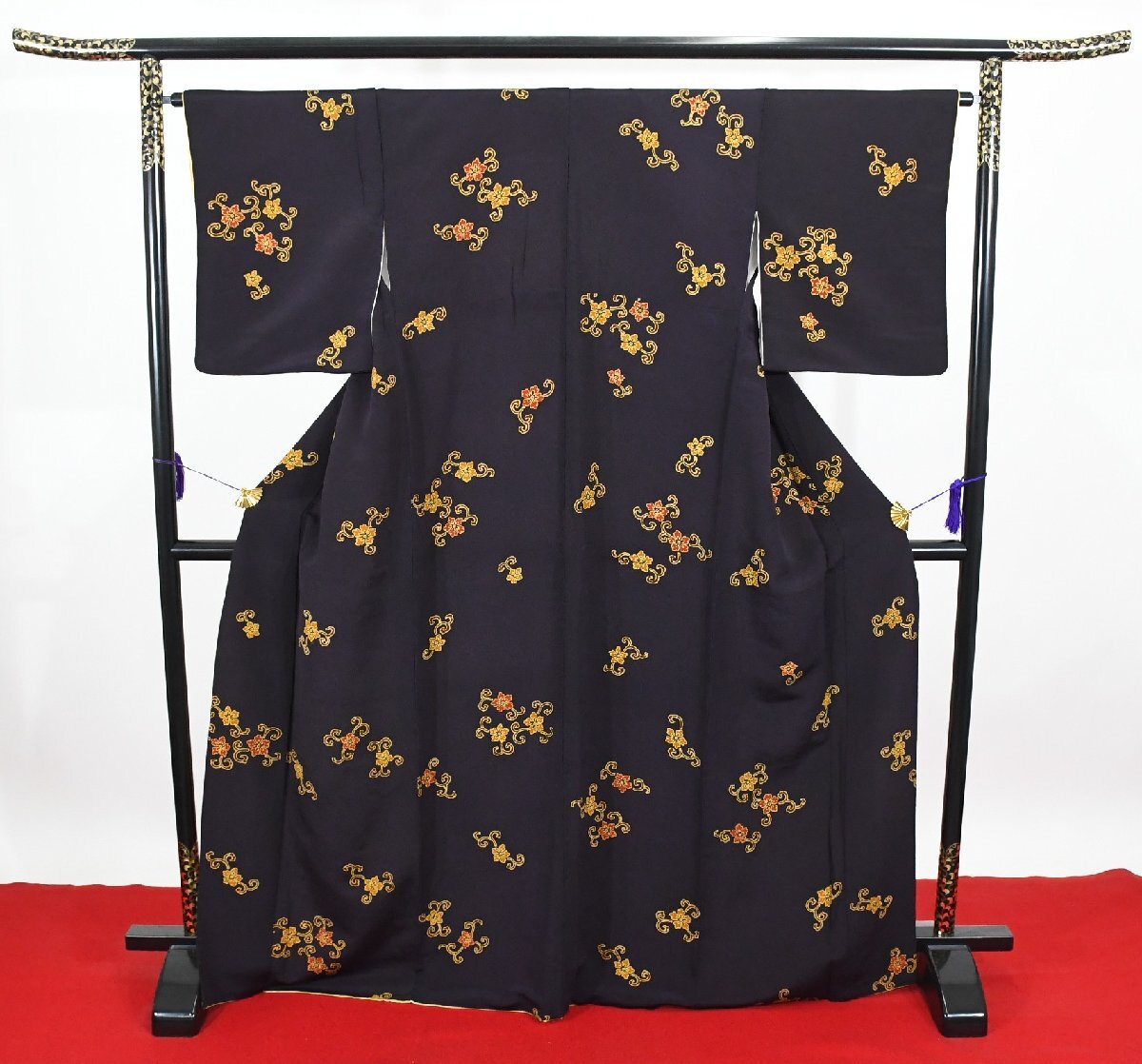 - 小紋 着物 袷 ちりめん 花 唐草 身丈162cm 裄丈64cm ★ kb-7535 桜庭呉服店