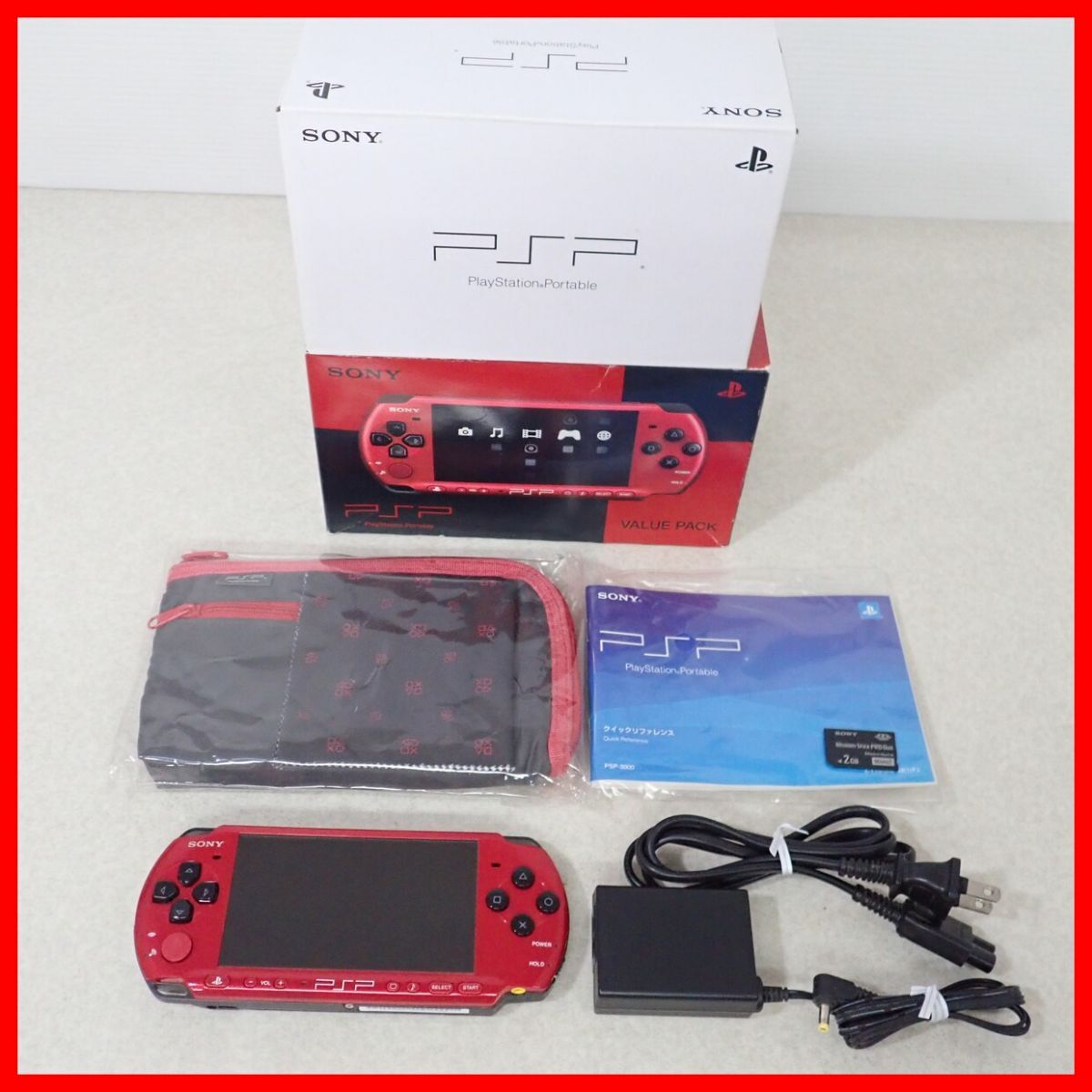 > 動作品 PSP プレイステーションポータブル 本体 PSP-3000 RED/BLACK VALUE PACK SONY ソニー 箱説付 即決【10