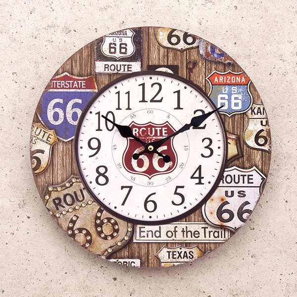 - 【End of the Trail】※《アンティークMDFクロック・ROUTE66》 アメリカン雑貨 MDF材 木製 時計