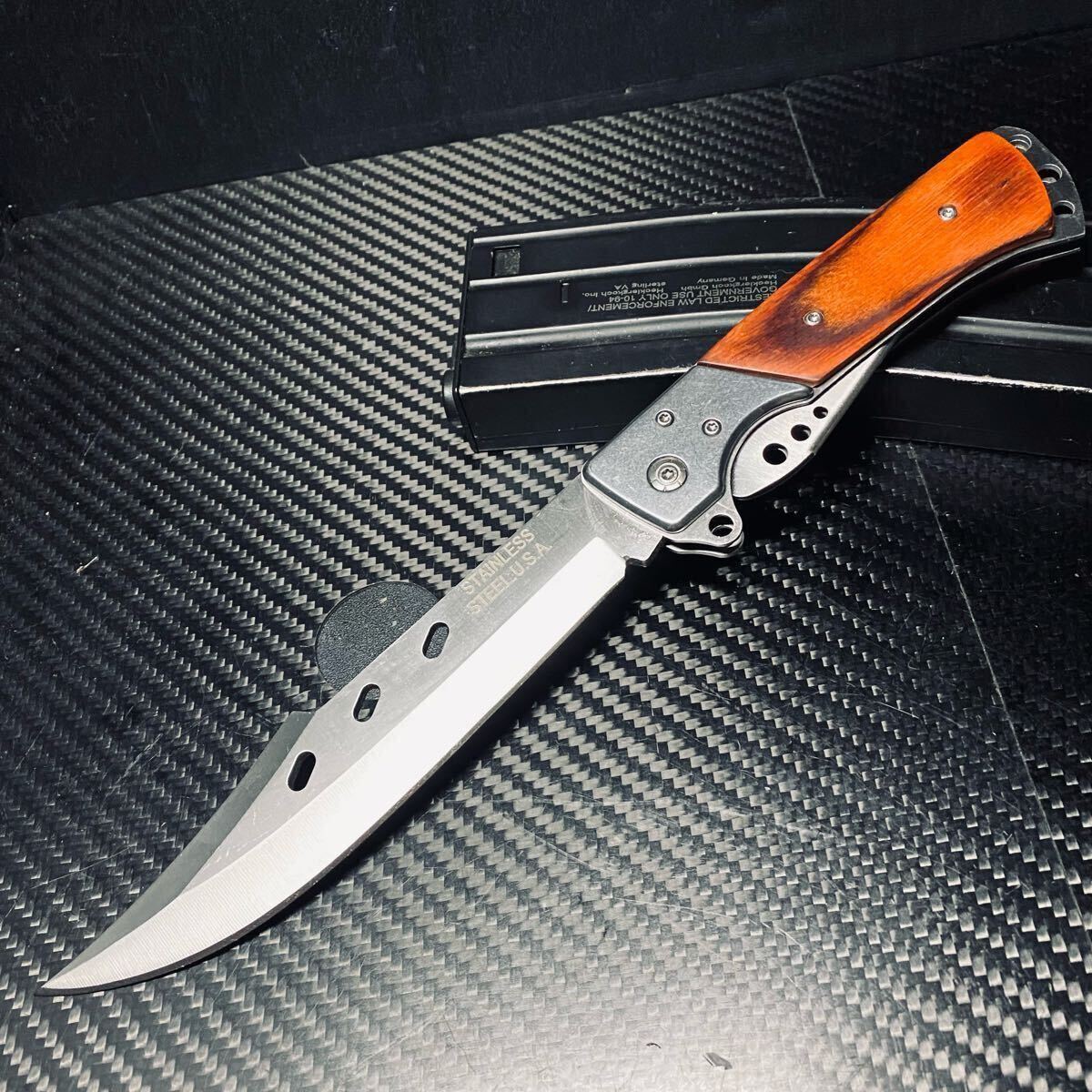 - 超高品質 大型折りたたみナイフ アウトドアナイフ キャンプ 刃厚約4mm ハイキング 野外登山 フィッシング 223g