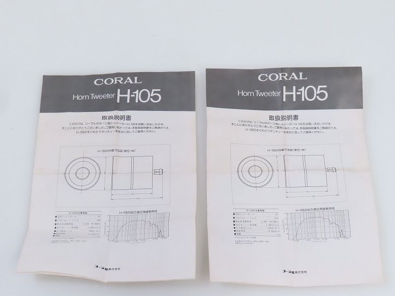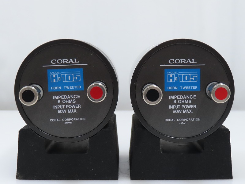 > ■□【未使用】CORAL H-105 8Ω ホーン型 ツイーターペア コーラル 台座/元箱付□■030928014m□■