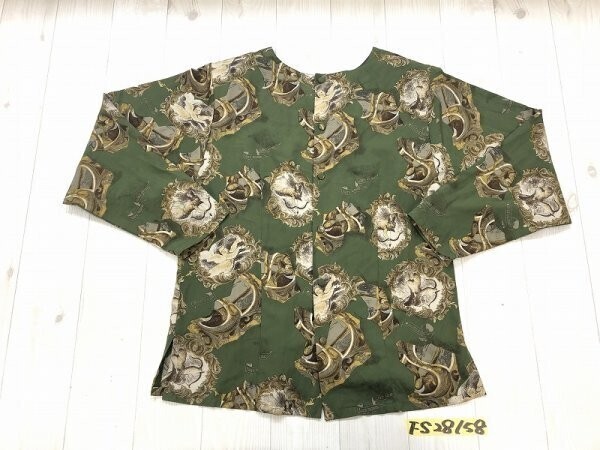 > ノーブランド レディース 日本製 肩パッド入 ノーカラー 天使柄 シャツジャケット フリー 緑