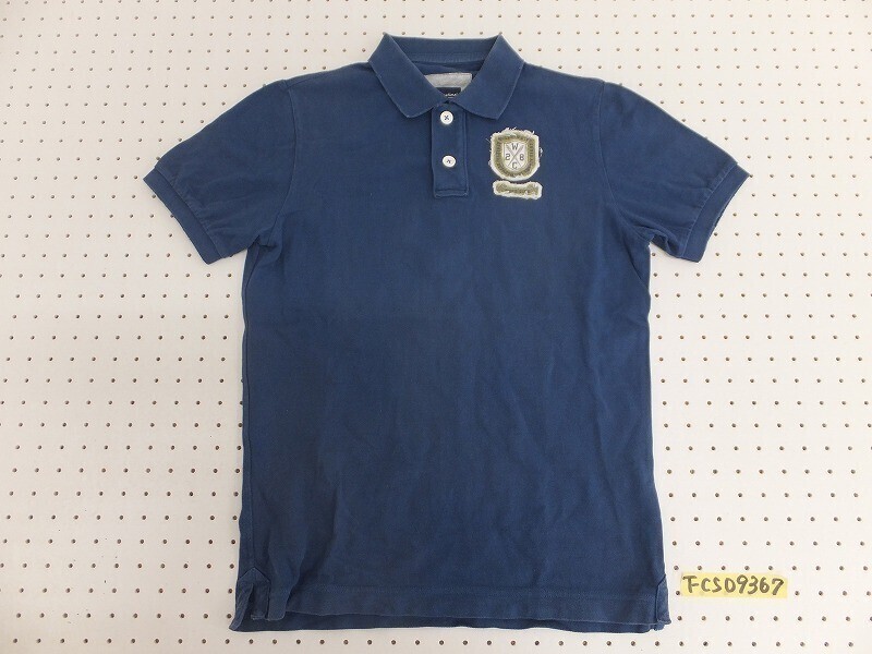 > I.T.’S international イッツインターナショナル メンズ ワッペン付き バックプリント 綿 半袖ポロシャツ S 青白カーキ