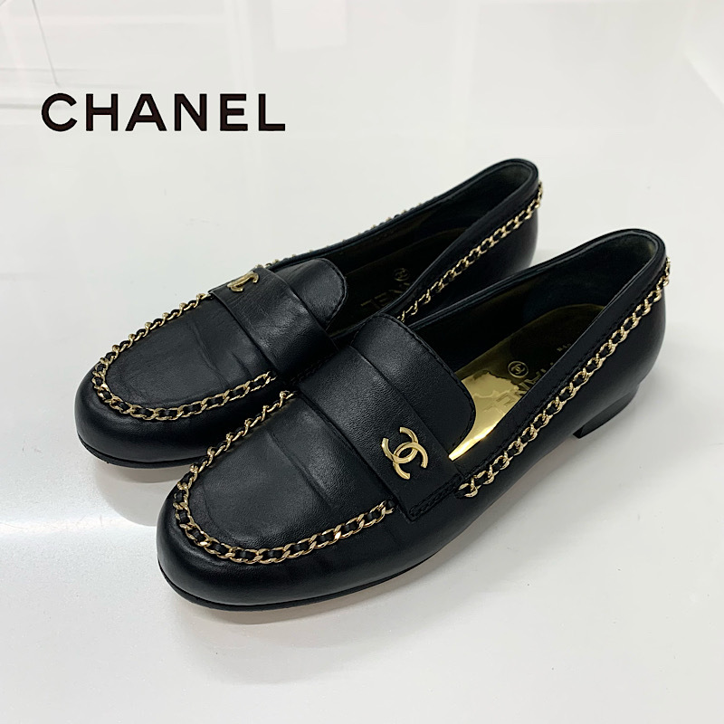 - M13332 シャネル ココマーク レザー チェーン ローファー ブラック