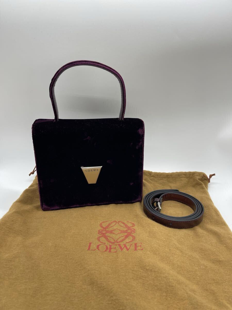 > 【1円スタート】LOEWE ロエベ ベルベット×レザー 2WAYハンドバッグ パープル系 保存袋・ストラップ付き MADE IN ITALY