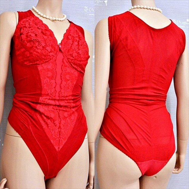 - CE5-X40☆//インパクトあるREDカラーで心をつかむ♪85C*ノンワイヤー幅広ボディスーツ*クロッチ開閉※一番安価で送料はゆうパケット250円