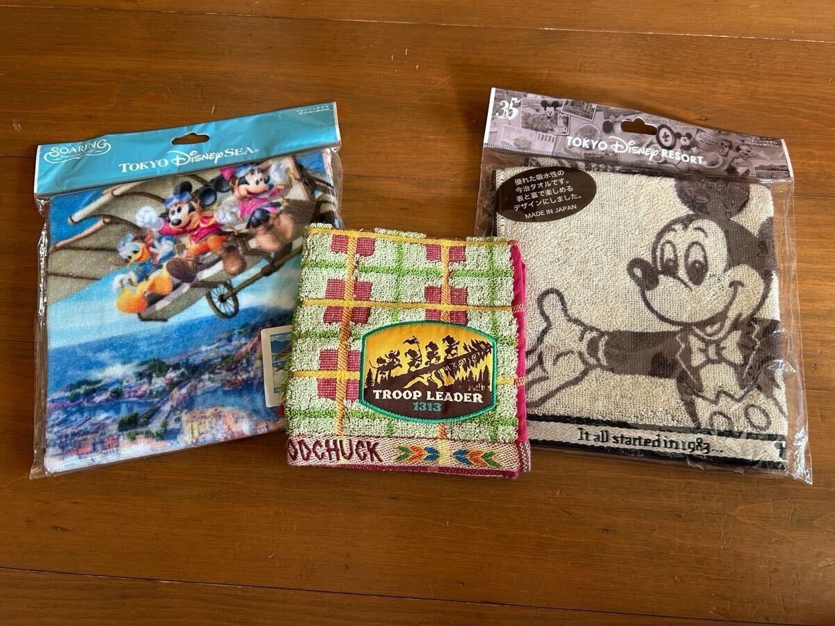 - ディズニー タオルハンカチ・ウォッシュタオル3枚セット 未使用品