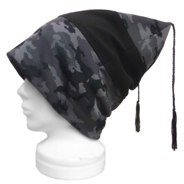 - 【ラスト1点】 ◇送料無料◇ ハンドメイド◆X JAPAN◆hide風 迷彩柄ジャガード織ニットキャップ/ブラック系 ◇ゆったりサイズ◇