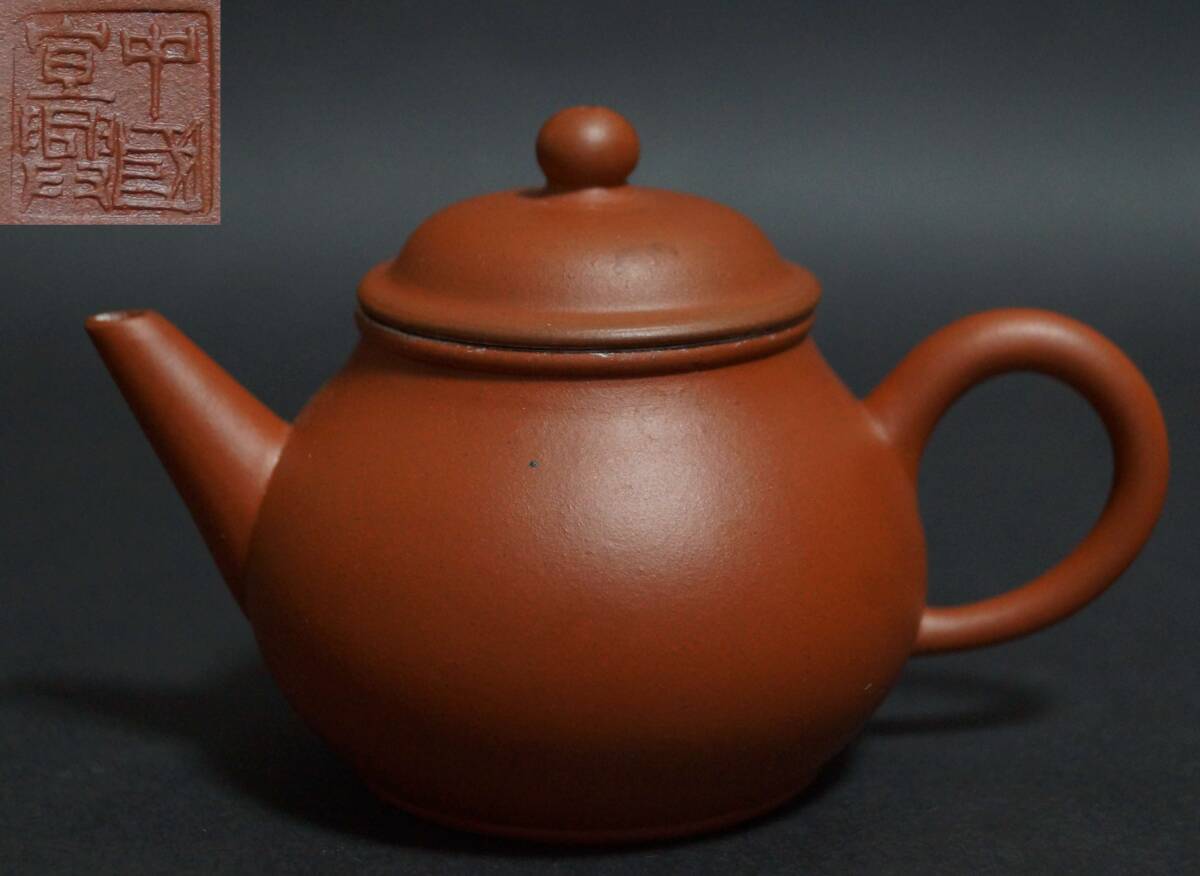 - 【閑】中国宜興紫砂 時代朱泥急須 単孔紫砂壺 朱泥 中国宜興在銘 煎茶道具★時代物★7D1106