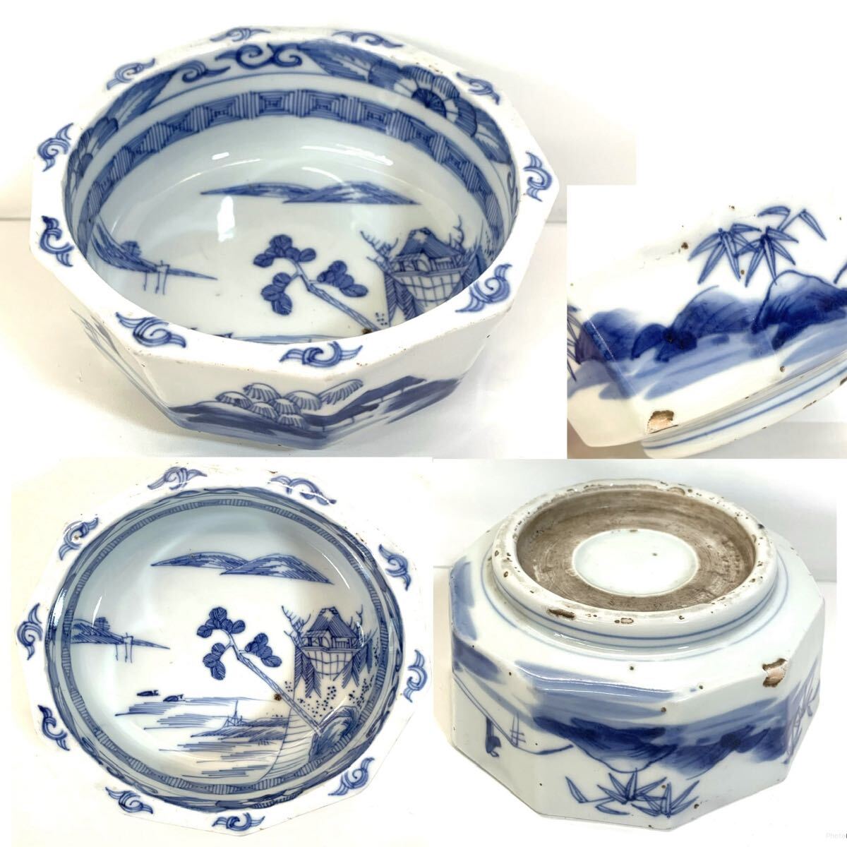 - アンティーク雑貨 染付 山水図 深鉢 鉢 深皿 陶磁器 食器 骨董品