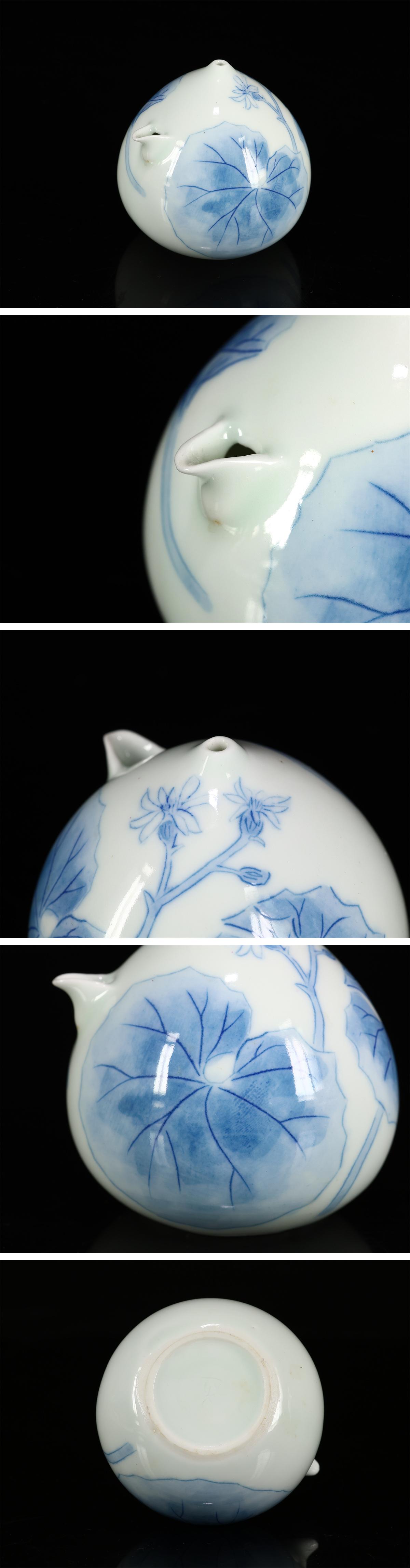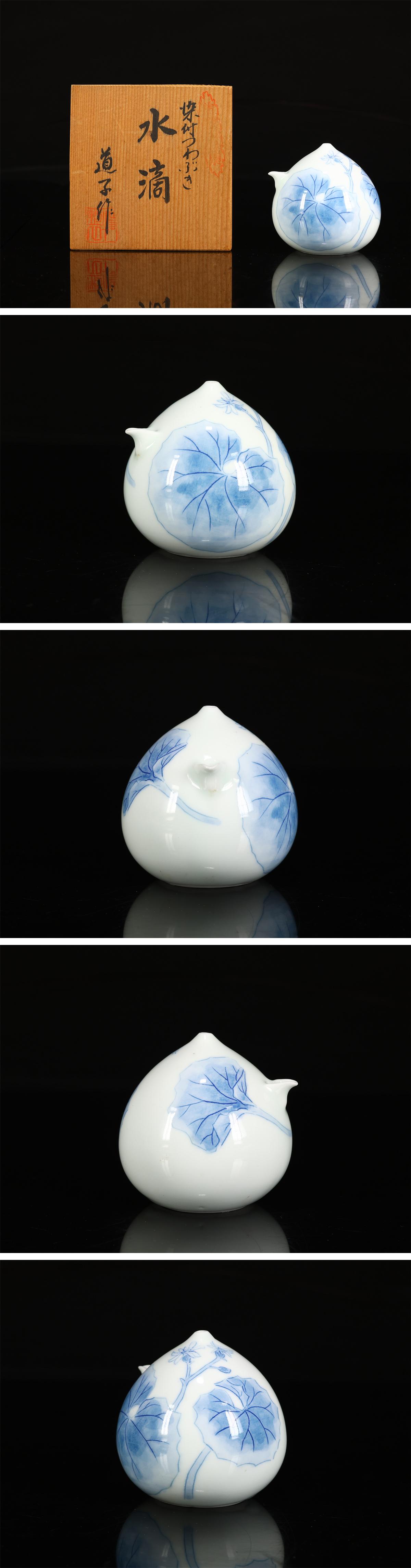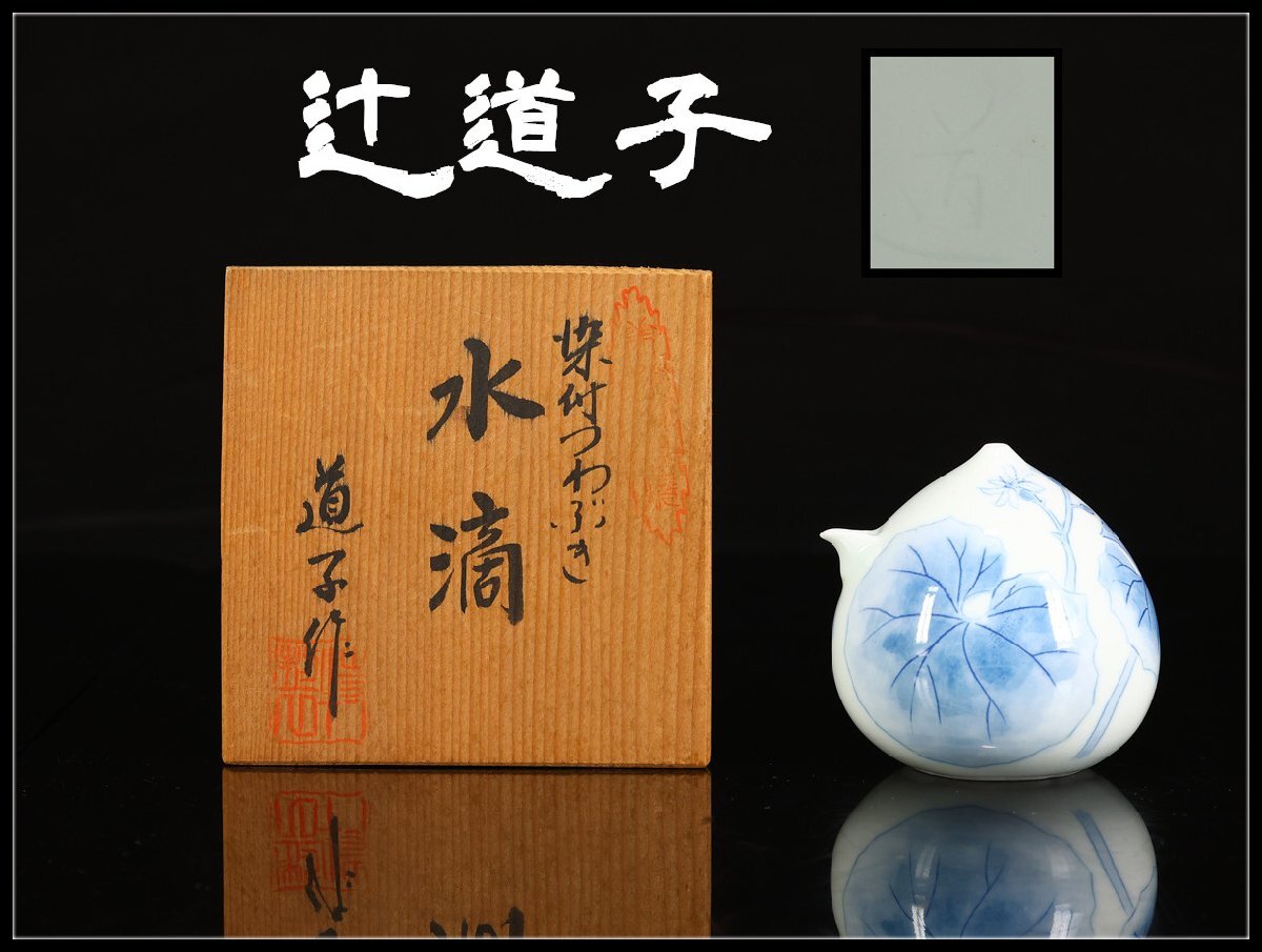 【吉】CN760 名工 【辻道子】作 染付 水滴/共箱付 美品!拍卖