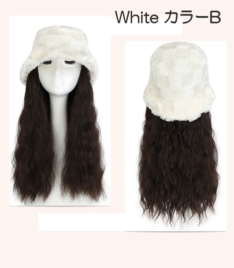- ウィッグ付きハット ウィッグカラー/Bハットカラー/ホワイト ロングヘアー イメチェン 髪色チェンジ コスプレ ヘアネット不要 n469
