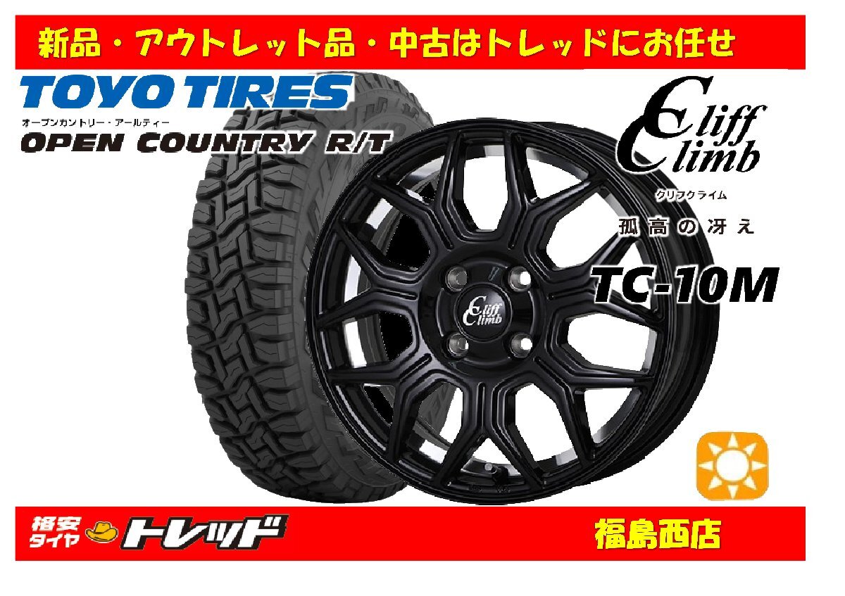 - 福島西 新品 サマータイヤホイール4本SET クリフクライム TC-10M 14インチ 4.5J 100/4H +45 & トーヨー オープンカントリーR/T 155/65R14