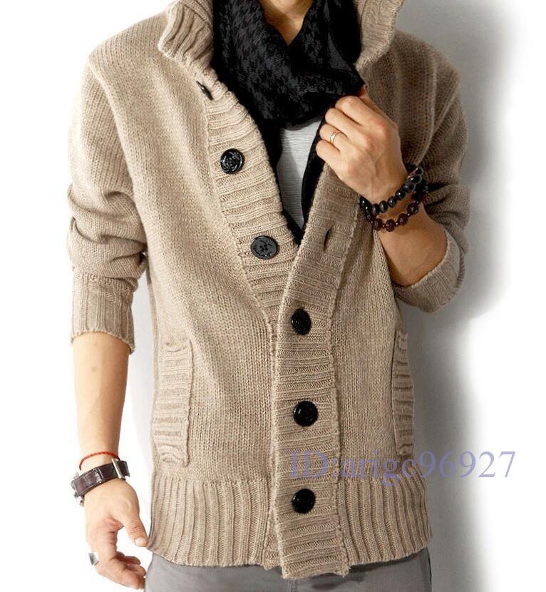 > Y781☆新品カーディガンメンズ カーディガン 秋冬 長袖 ニットジャケット ニットアウター ショールカーディガン セーター M~2XL カーキ