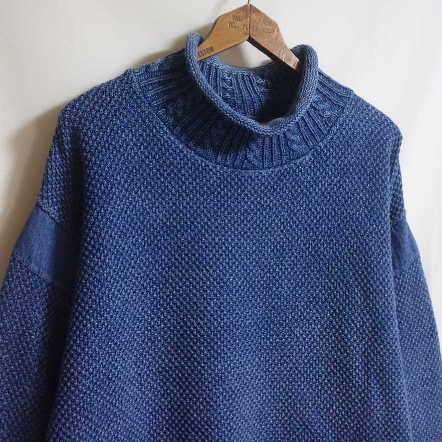 > 【デンマーク製 90's BLUE WILLI'S ロールカラー コットン インディゴ ニット XL】ブルーウィリーズ カーディガン