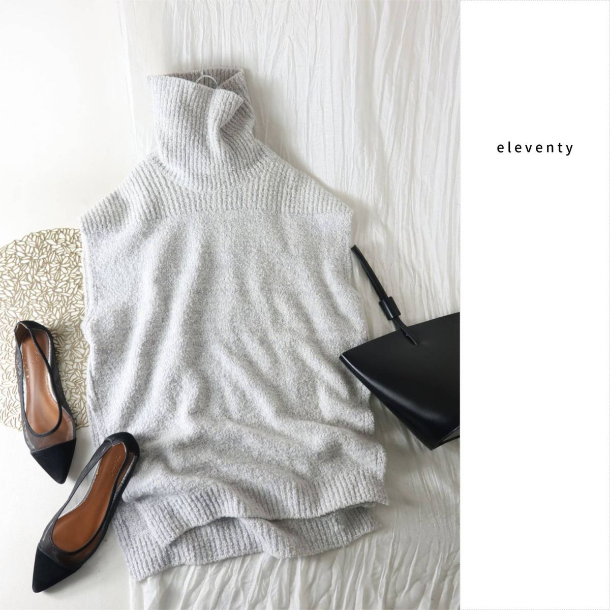 - イレブンティ eleventy☆イタリア製☆ウールカシミヤ混 サイドスリット タートルニットベスト Mサイズ☆A-O 6351