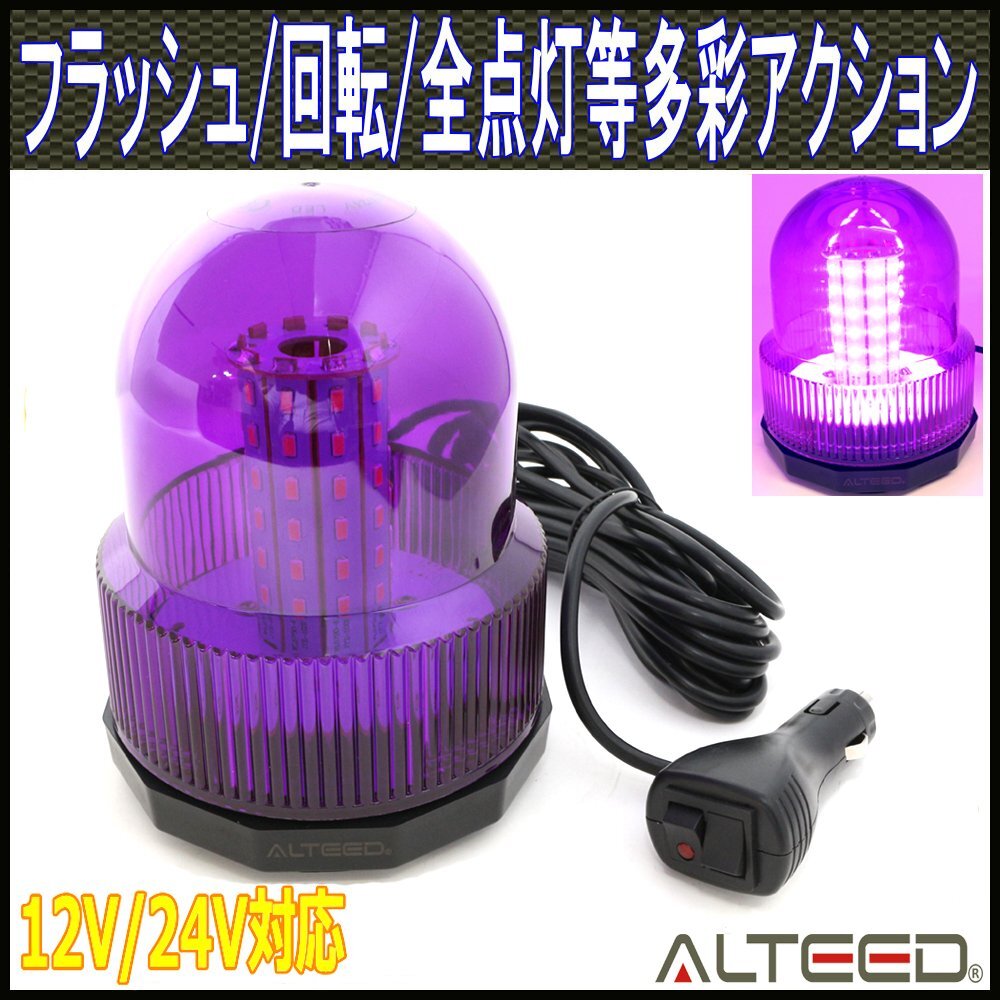 > ALTEED/アルティード 12種発光LED回転灯/SMD5730x60発/12V24V/紫色[パトランプ/フラッシュライト/作業灯/緊急非常灯/停車灯]
