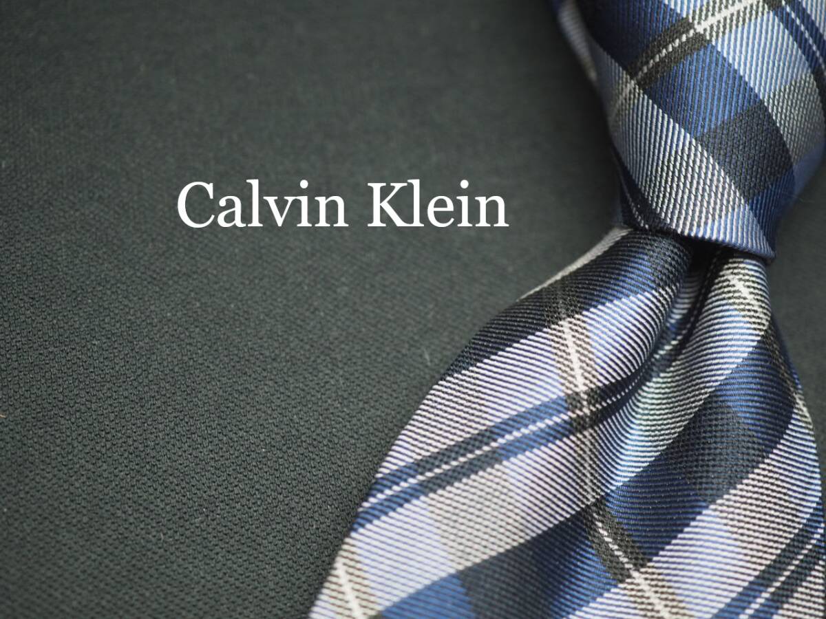 > 訳あり未使用品【Calvin Klein カルバンクライン】 G1015 ネイビー系 チェック SILK ブランド ネクタイ 古着 良品 転売 仕入