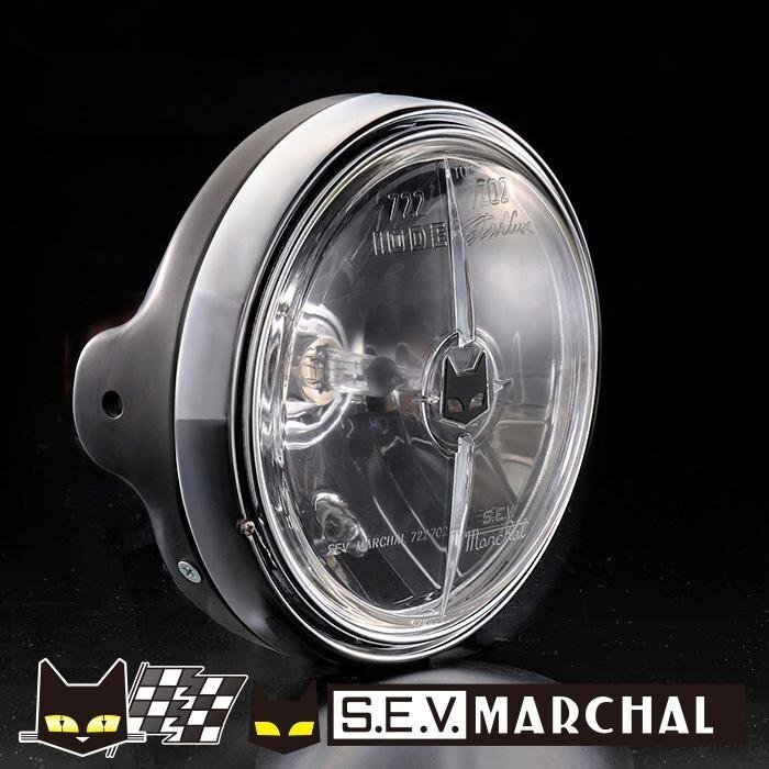 > 【カワサキ】マーシャルヘッドライト 722・702スタールクス クリアレンズ・黒ケース 汎用 ライト径180mm 8417K