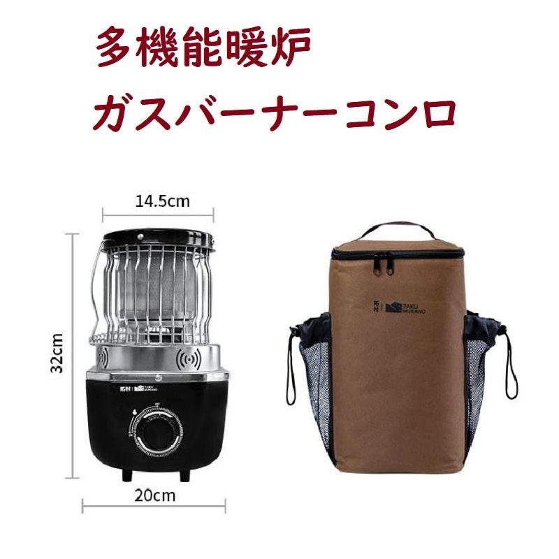- キャンプ用ガスストーブ多機能暖炉ガスバーナーコンロ ヒーター 1700g 32×20×14.5cm 2300w CB缶アウトドア野外登山 収納付き ブラック