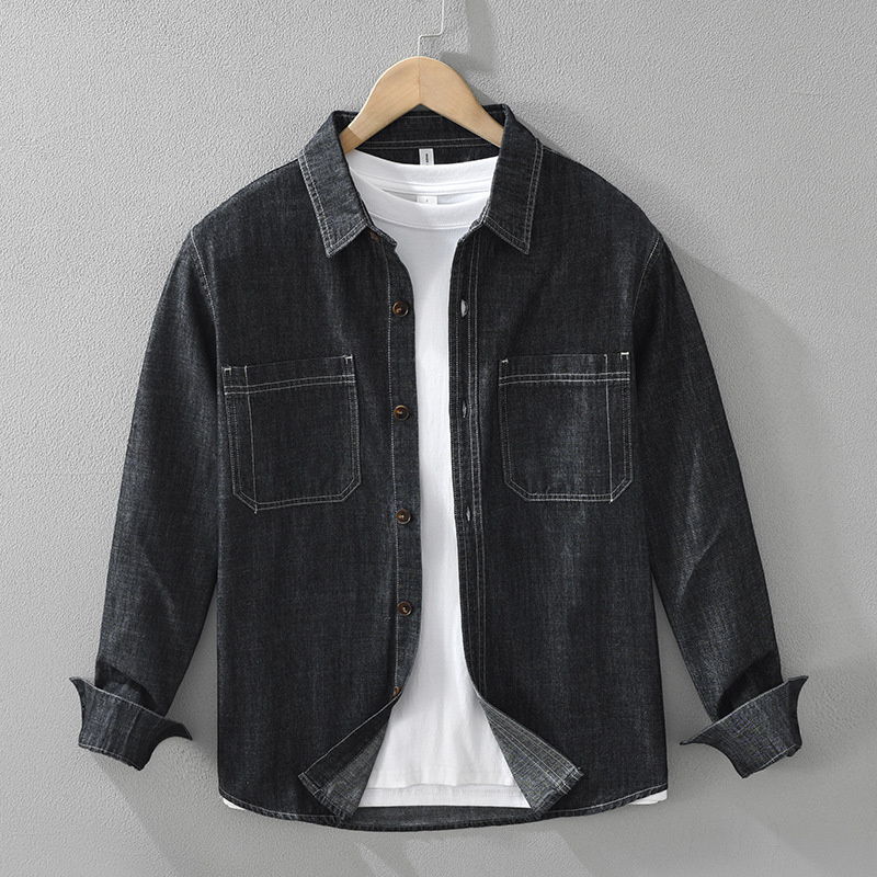 - 長袖シャツ デニムシャツ ウエスタンシャツ シャツジャケット メンズ*新品 トップス カジュアルシャツ【M7392】黒色 M