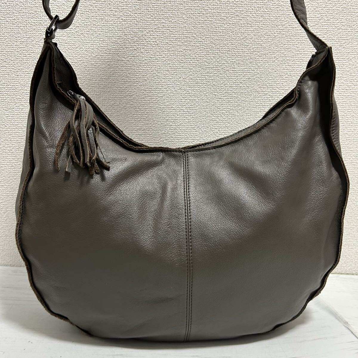 > 美品 MITSUKI ミツキ レディース 斜め掛け ショルダーバッグ クロスボディバッグ 本革 レザー グレー 軽量 タッセル ハーフムーン